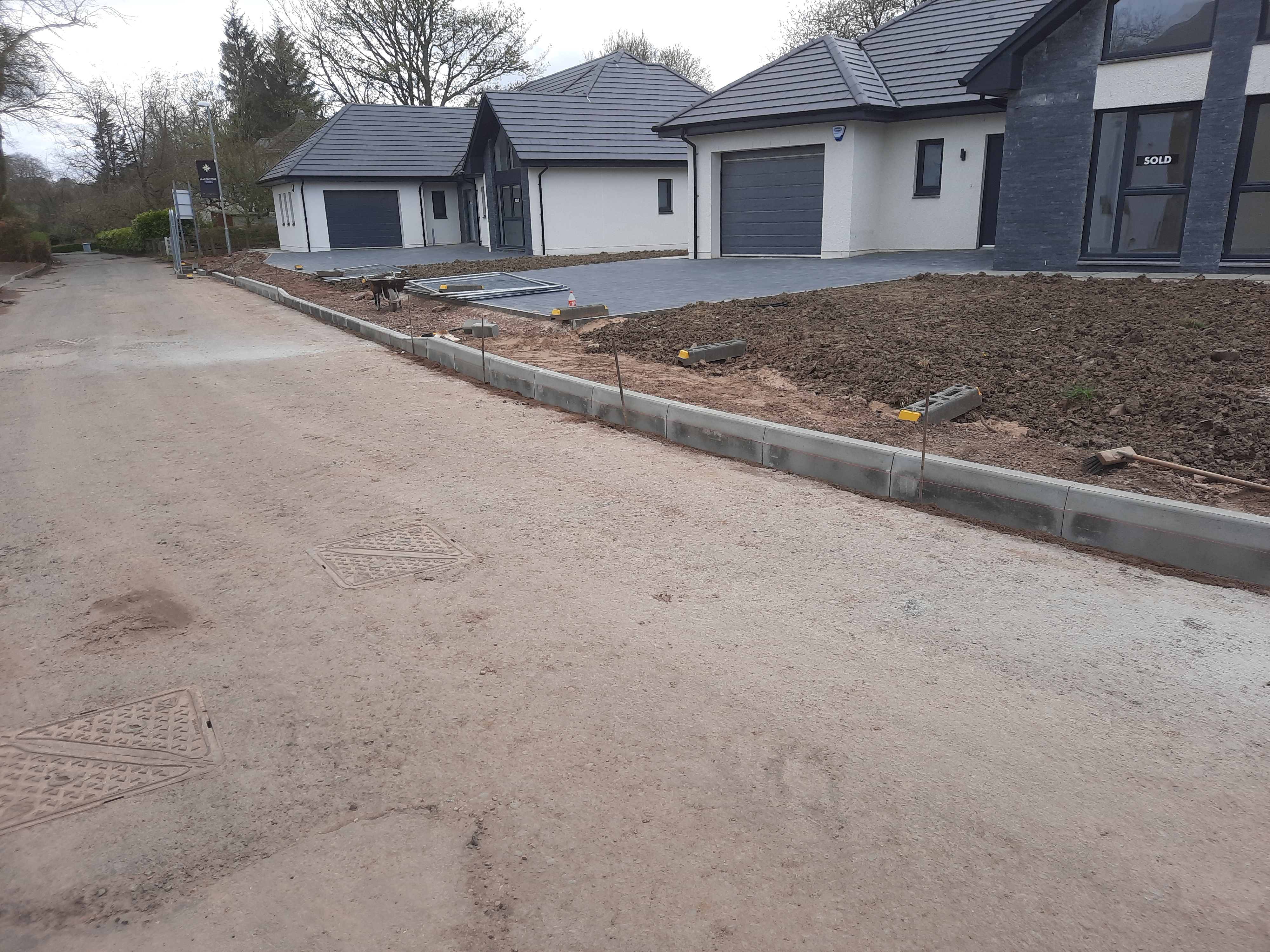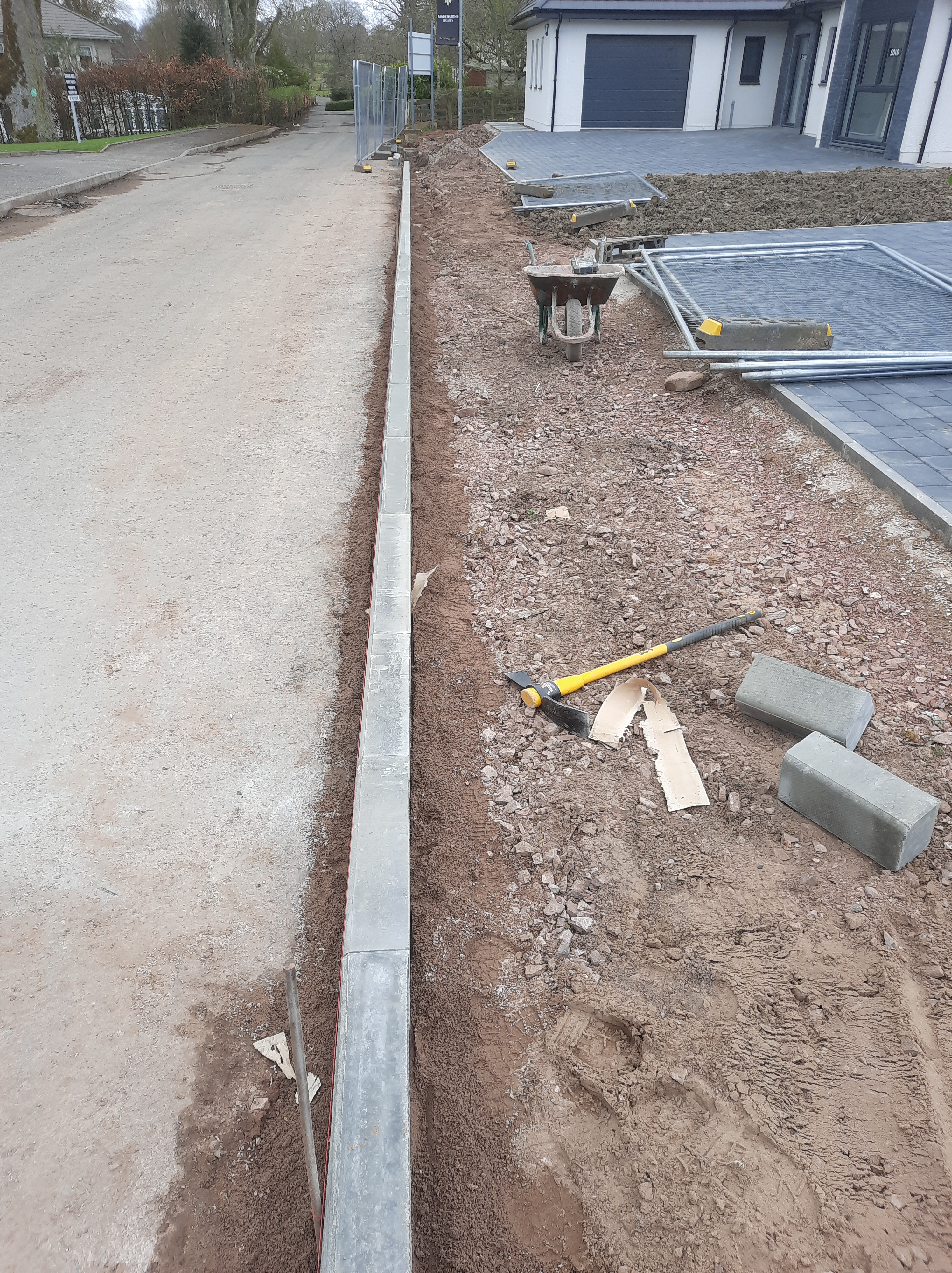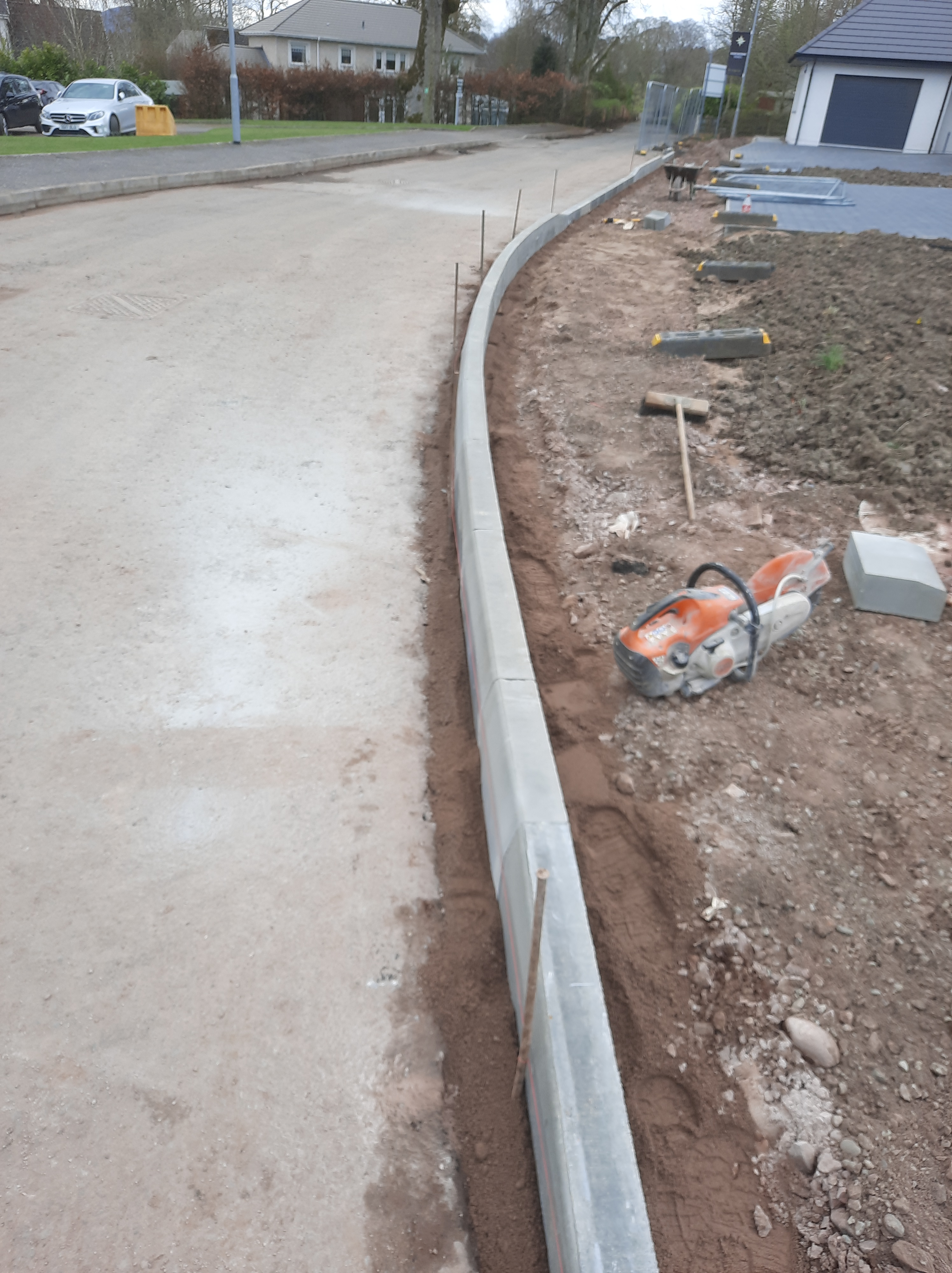 We are extremely competent in kerbing, where we regularly carry out work for highways, carparks and housing schemes. We also engage in smaller, residential edging jobs and are able to construct new formed roads and car parks to high specification. These photos are from some of the recent projects we have completed.
